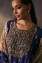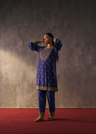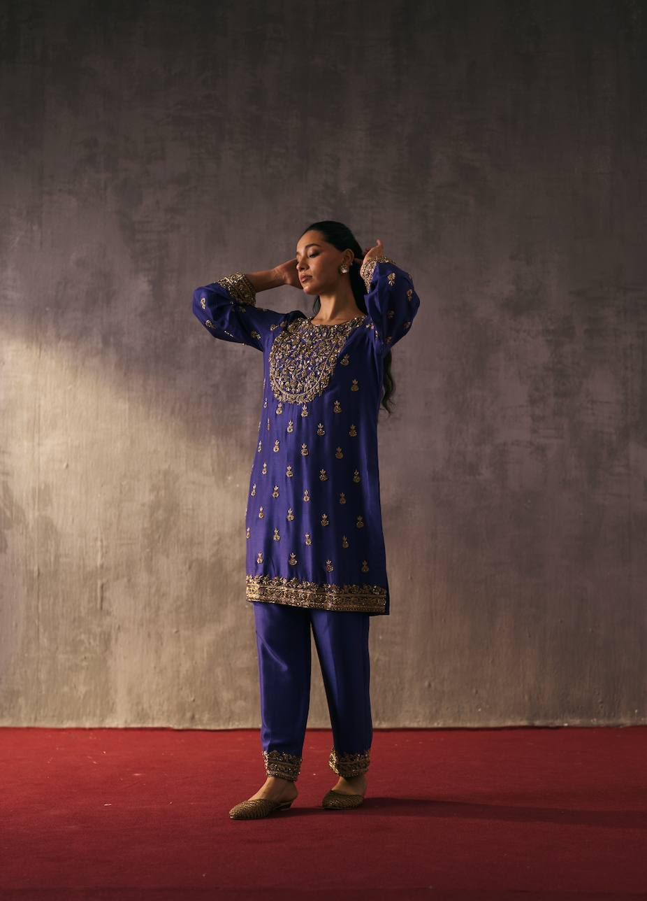Royal silk shirt and trouser set delicately hand embellished with dapka, zari and round sequin.