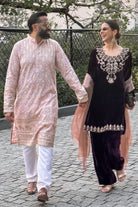 Sequin and swarovski stone embroidery on the top with velvet pants and tissue depatta. This is a three piece set.