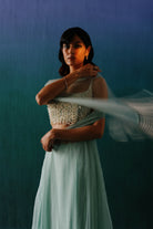 Dry clean only. Kindly note, product tones may vary due to lighting.