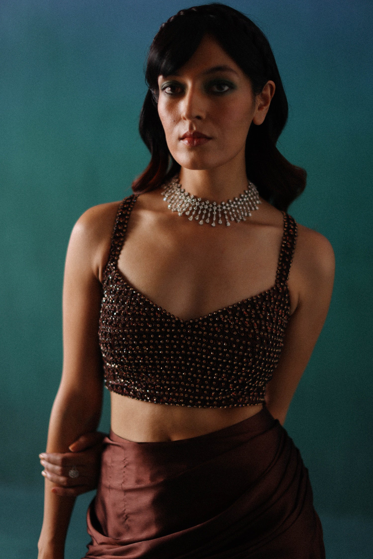 Emerald crop top & skirt