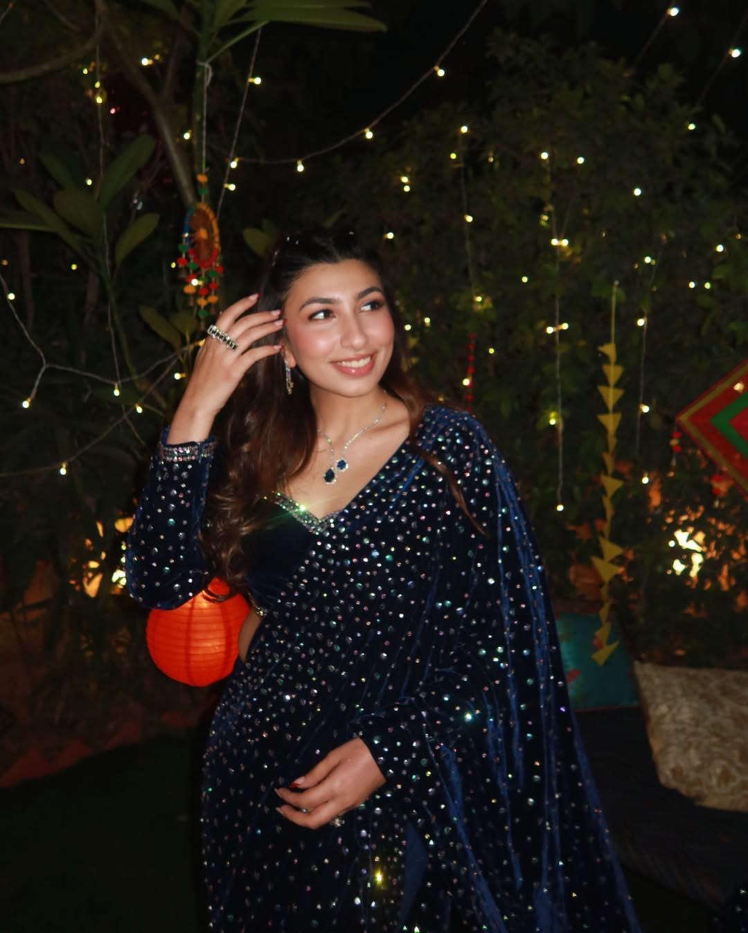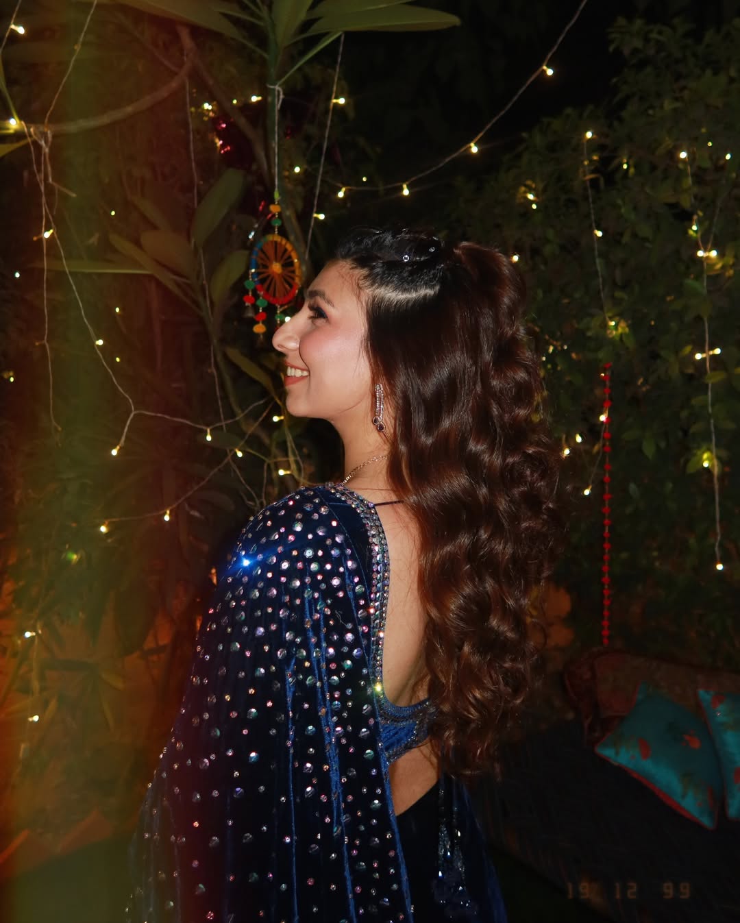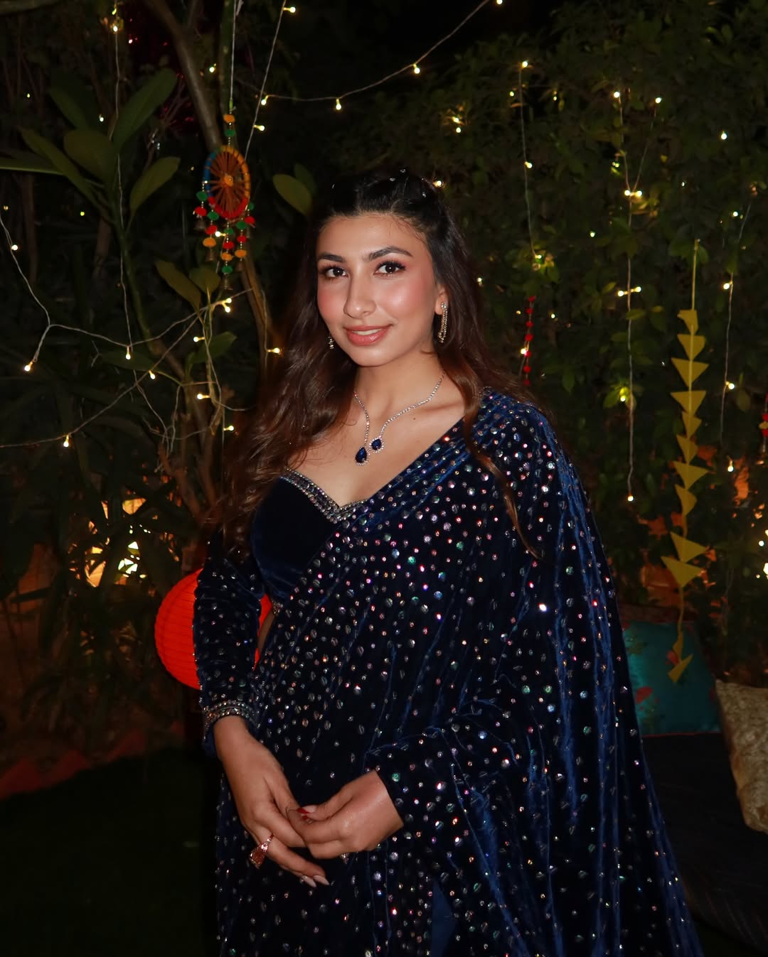 Fish cut embellished velvet saree skirt with crystal embellished palla to sparkle paired with embroidered full sleeves velvet blouse.