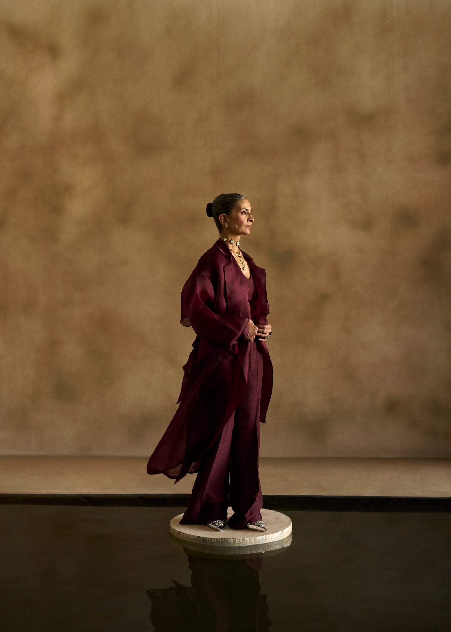 Dry clean only. Kindly note, product tones may vary due to lighting.