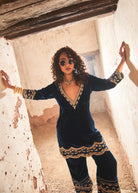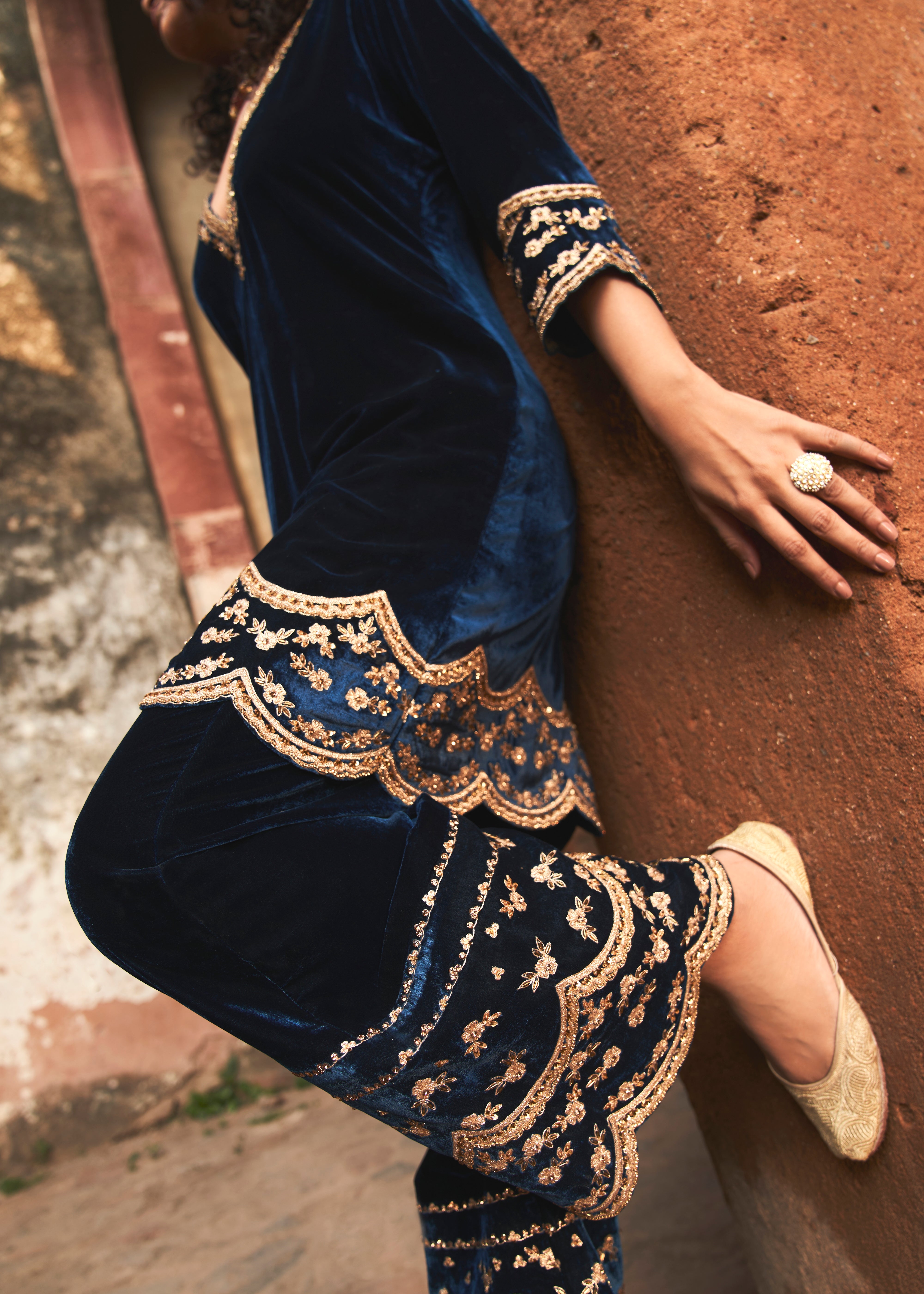 Gold On Blue Scallop Zeya Velvet Set
