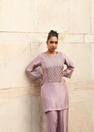 Silver On Mauve Zeya Silk Set
