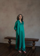 Straight shirt with collar and cuff detailing paired with straight fit pants.