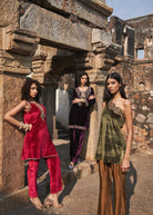 Off-Shouler Olive Mustard Zeya Velvet Co-ord Set